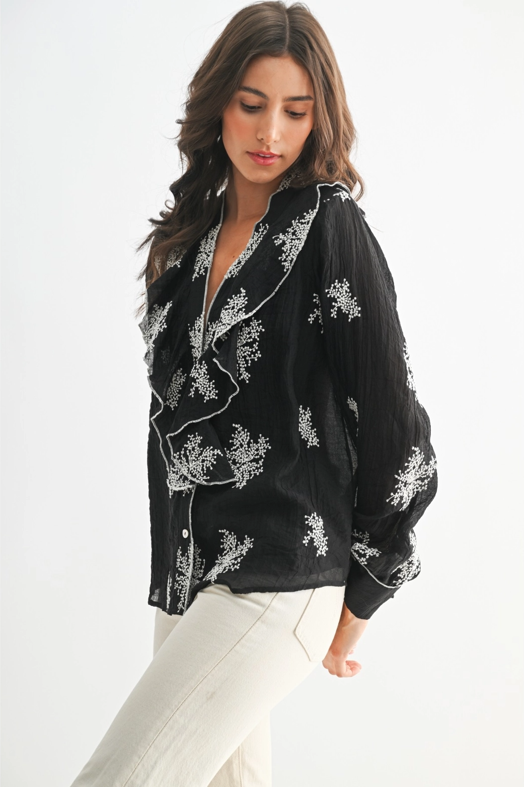Camellia Black & White Embroidered Blouse