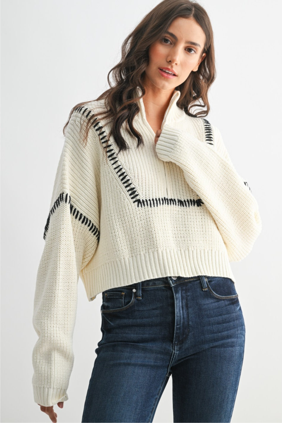 Elevate your wardrobe with the sophisticated Elegance Knit Half-Zip Sweater, designed for those who value both style and comfort. This exquisite piece showcases a refined design with striking black accents that add a touch of luxury to any attire. Perfect for corporate settings or upscale gatherings, this sweater is a statement of timeless elegance.