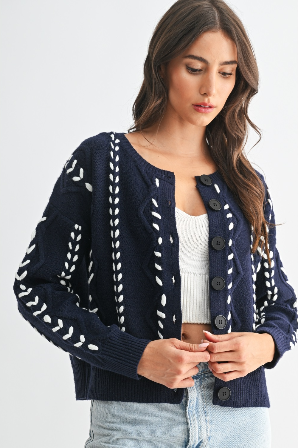 Perfect for those seeking both style and comfort. The intricate detailing and timeless design cater to a refined taste, making it an essential addition for any discerning individual. Crafted with premium materials to ensure a luxurious feel, this cardigan addresses your need for both practicality and elegance, seamlessly blending into your professional and casual settings.