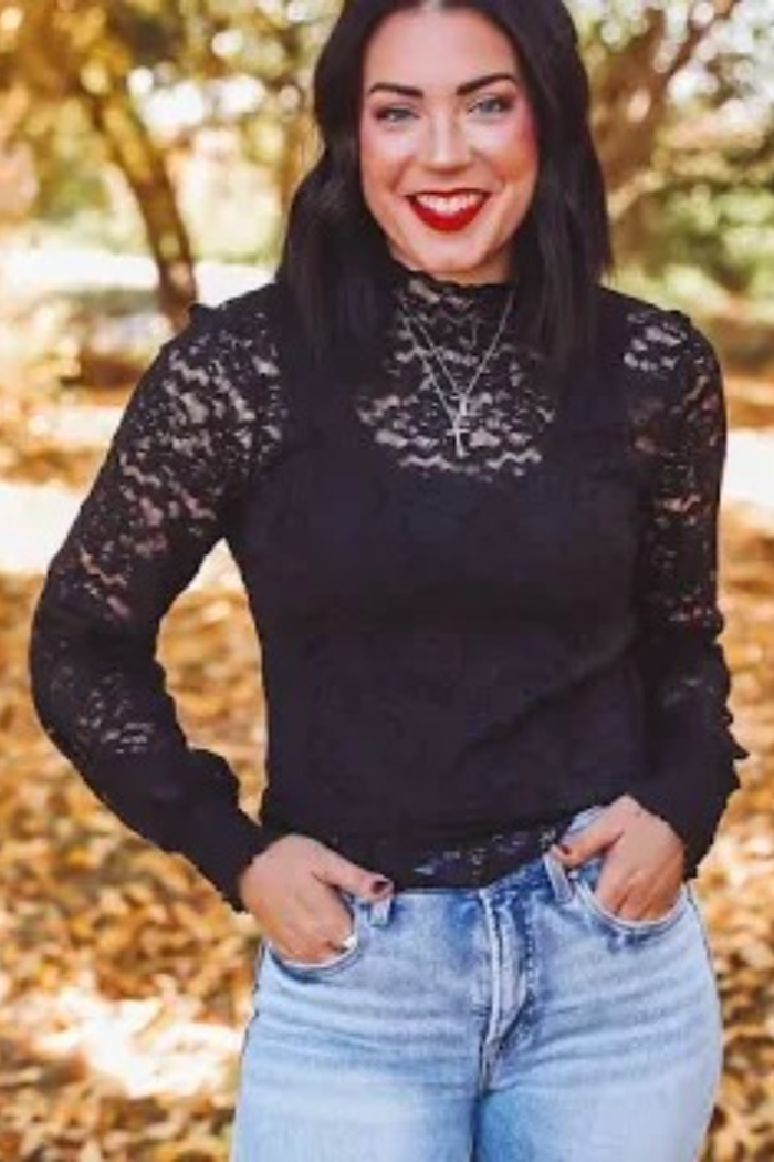 Hem & Thread Black Lace Top With Bubble Sleeve.