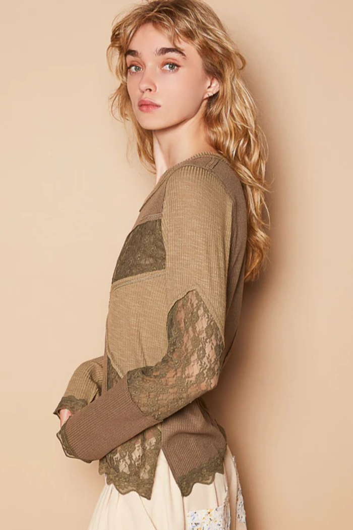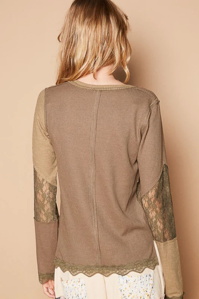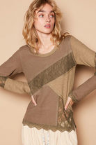 Designed in round neck, full sleeve, fitted top in thermal and rib mix with lace trim detail pointed solid pattern.