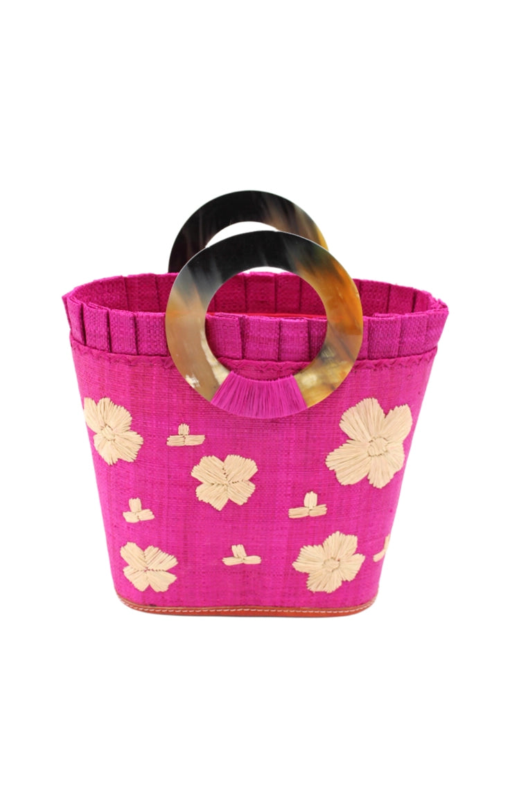 Shebobo Tulum Fuchsia Floral Straw Bucket Bag