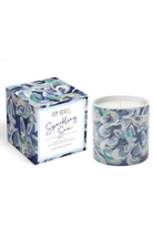 Annapolis Sparkling Sea Boxed Candle by Kim Hovell is a hand-poured scented candle presented in a printed ceramic vessel with a coordinating gift box. The coastal "Sparkling Sea" fragrance blends notes of sea moss, agave and amber for a fresh, breezy aroma. A single cotton wick delivers a clean, steady burn, making this candle an elegant gift or a fresh addition to your home décor.