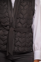 Stand out with this lovely padded waistcoat with a quilted heart shape design. This waistcoat features a lower shoulder line and a waist belt for a sophisticated, modern look.