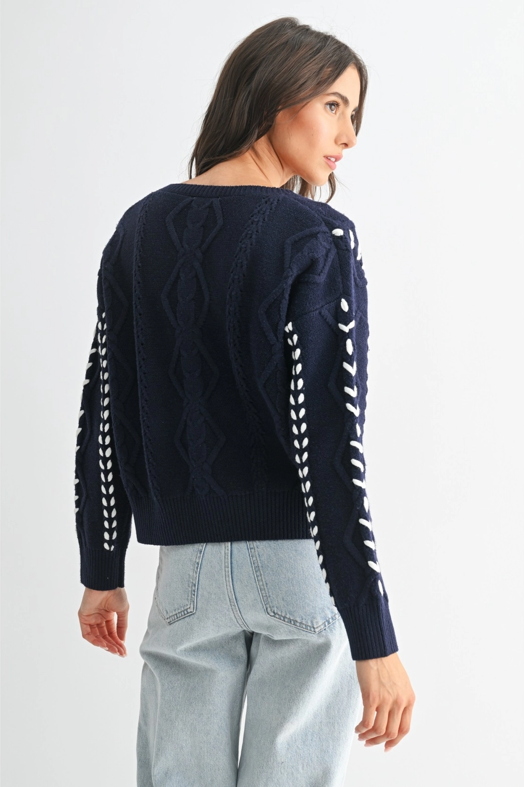 Camellia Tori Ribbon Stitch Cable Knit Cardigan (Medium)