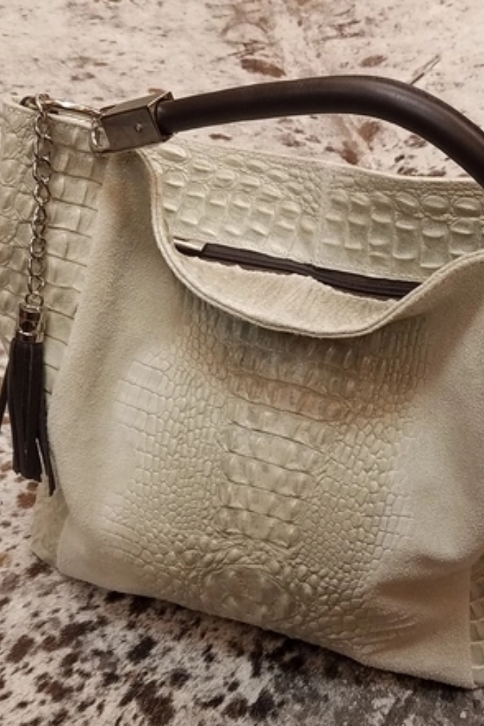 Genuine cowhide nubuck croco print suede leather print medium handbag top zip closure