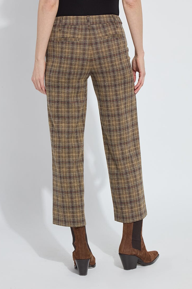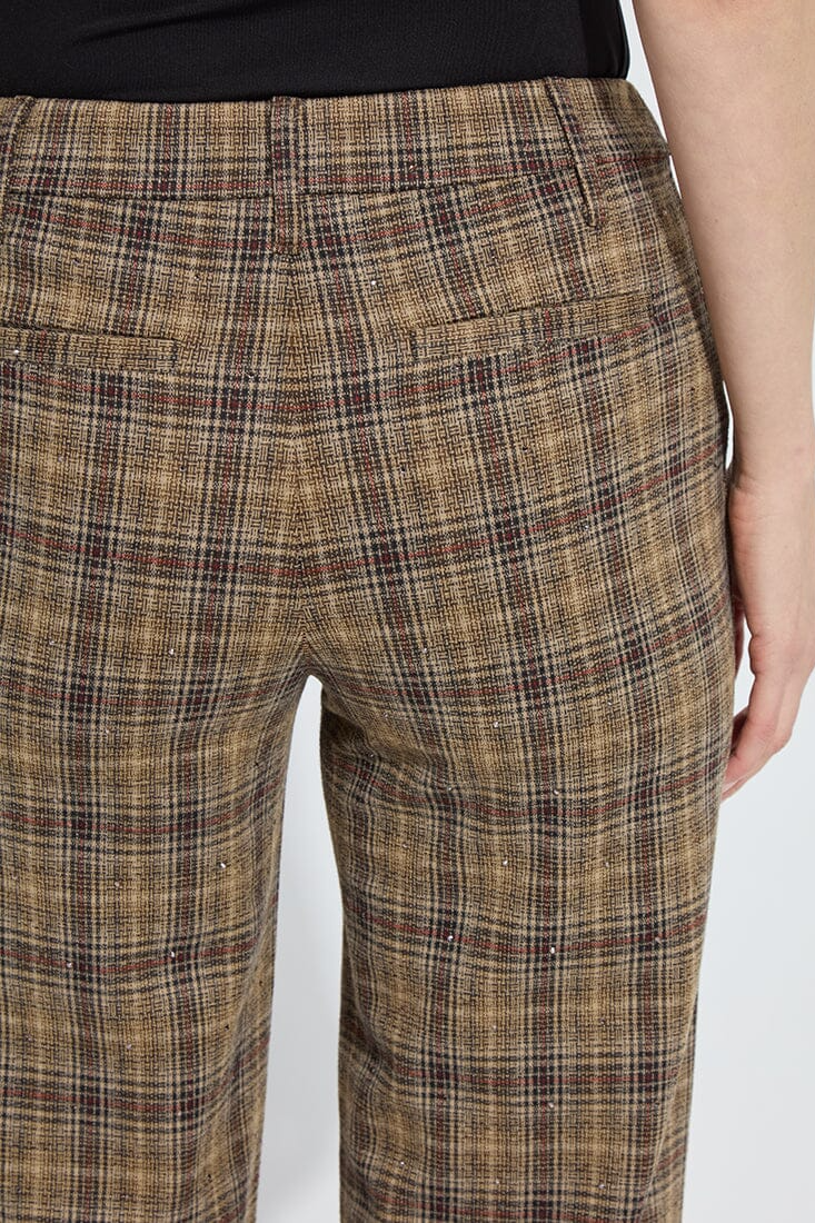 The Marceline Crystal Embellished Crop Pant, made from 4-way stretch Brushed Ponte Jacquard, showcases a discrete Copper Rhinestone Crystal application for a festive, feminine look. Offering a concealed patented waistband, beltloops, front pintucks, a back waist seam, back faux welt pockets and blind hem, the Marceline Crystal Embellished Crop Pant styles beautifully as a suit with the Marceline Convertible Collar Blazer. Turn inside out to machine wash.