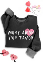 MOR AMOR POR FAVOR! Curl up with your Valentine on the sofa with this oh so soft graphic sweatshirt with an authentic vintage look.