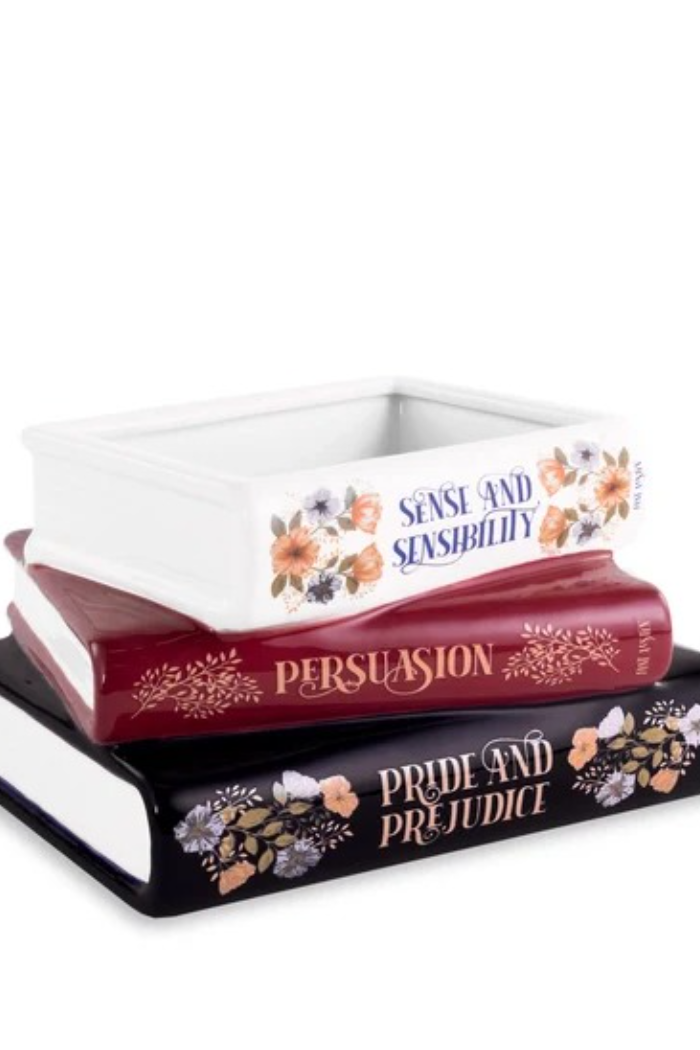 Any way you stack it this bookish planter is a must-have! Take your love for the classics one step further with our ceramic decorative books. Featuring artwork influenced by beloved titles and a multifunctional design, this unique planter is sure to dress up any room with bookish charm. Features hole for draining.